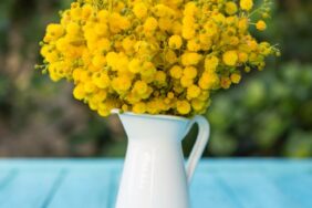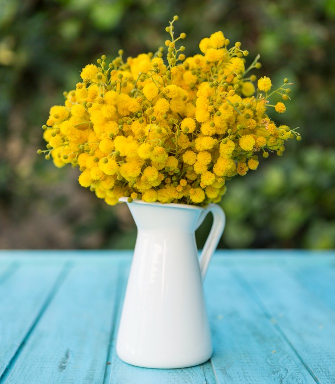 Les commerçants animent le marché autour de la “Fête du mimosa” et distribuent des brins à la clientèle.
