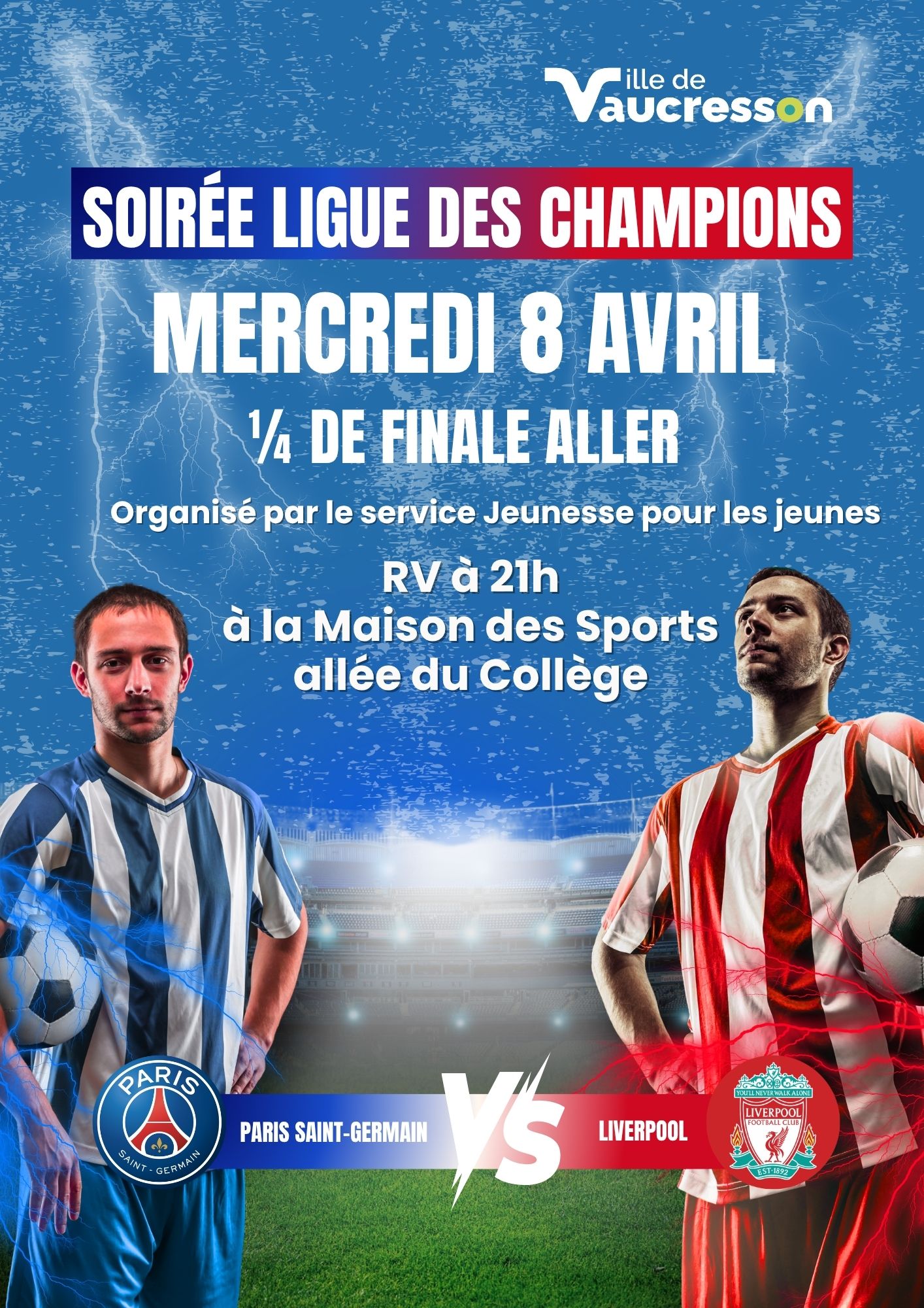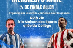 1/4 de finale mercredi 8 avril match allerRendez-vous à 21h à la Maison des Sports – allée du CollègeOrganisé par le service jeunesse pour les jeunes