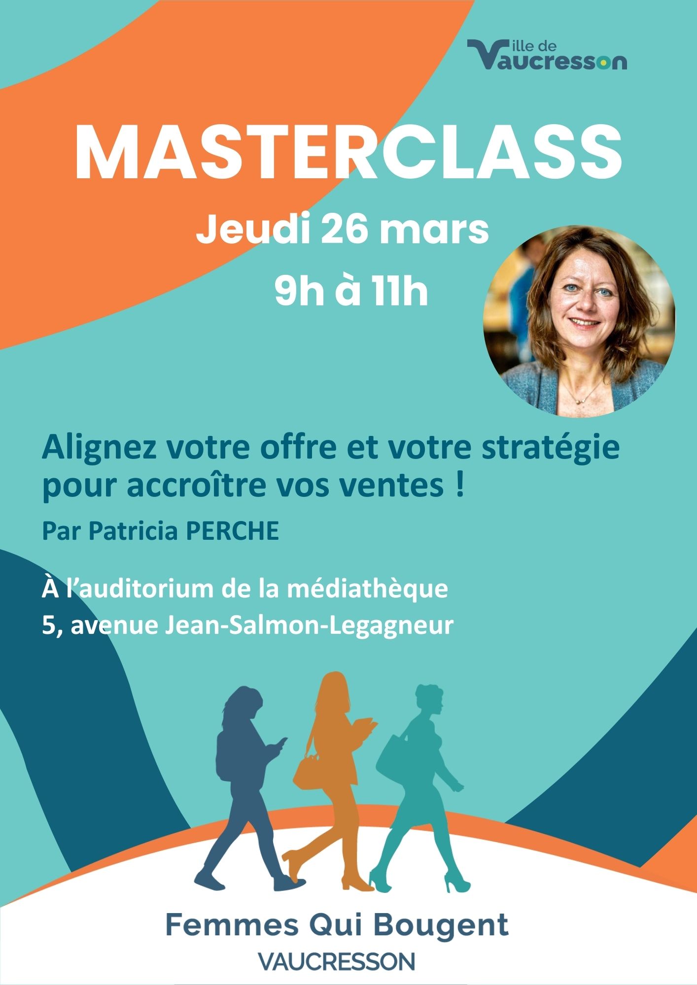 - Jeudi 26 : Master class Femmes Qui Bougent “Renforcer l’impact de son offre commerciale et gagner en lisibilité” . Auditorium de la médiathèque de 9h à 11h. Gratuit, sur inscription