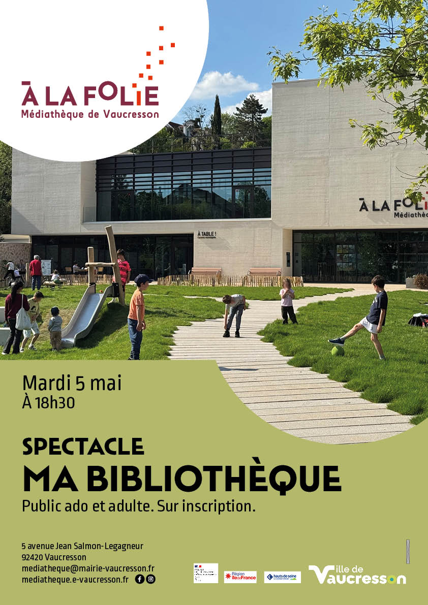 - Mardi 5 : Spectacle “Ma bibliothèque”. Ados/adultes. Médiathèque À la folie 18h30-20h. Infos et inscriptions